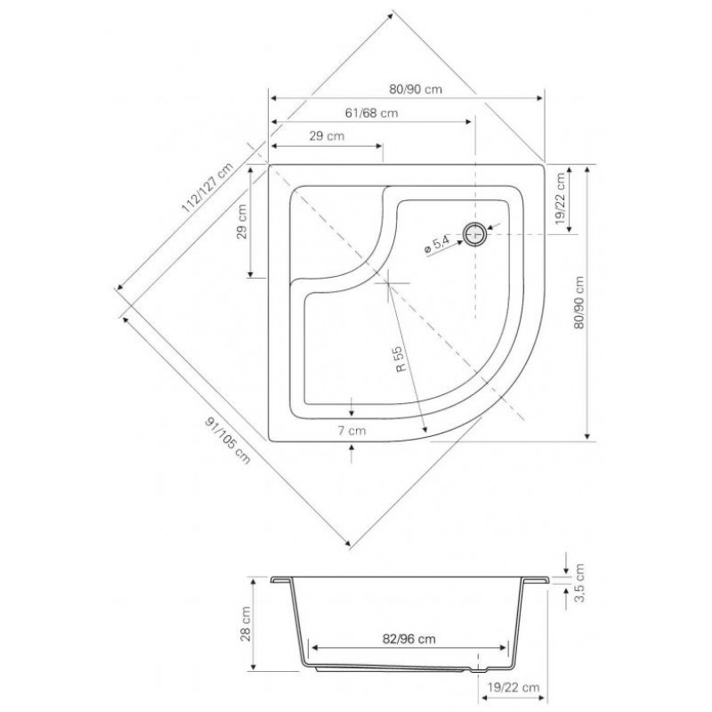 AQUALINE 80 Čtvrtkruhová vanička hluboká, akrylát C83Sprchová vanička akrylátová