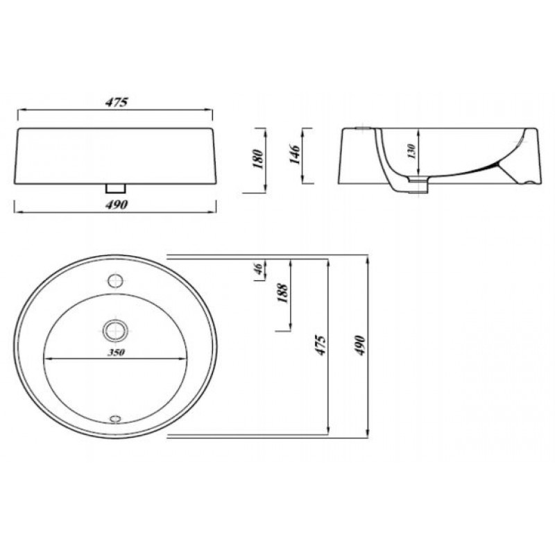 BROOK keramické umyvadlo průměr 50 cm, na desku, bíláBarvaBílá