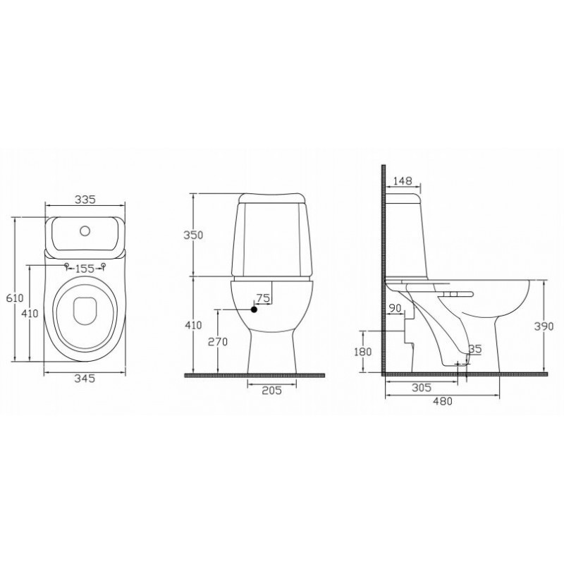 AQUALINE RIGA WC kombi WC, zadní odpad RG601