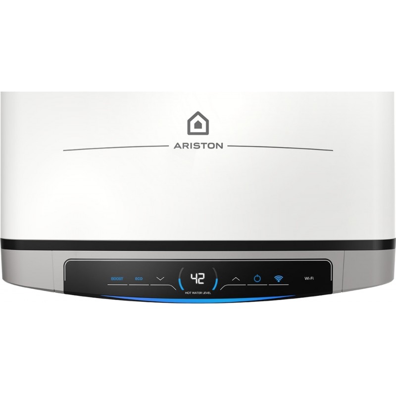 Wi-Fi ovládání přes aplikaci Ariston Net pro Android a iOS umožňuje vzdáleně ovládat zařízení, což umožňuje upravit nastavení tak, aby na vás po návratu z dovolené čekala teplá voda.Funkce Eco Evo automaticky naprogramuje provoz ohřívače na základě vašich zvyklostí a zajistí tak efektivní využití energie. Funkce Boost rychle ohřeje vodu na 80 °C bez další spotřeby energie (1,5 kW/h), díky čemuž máte okamžitý přístup k teplé vodě, kdykoli ji potřebujete.