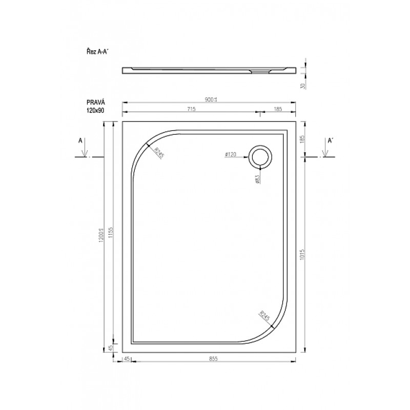 ARTTEC STONE 1290S - sprchová vanička obdélníková, litý mramor PAN00786- rozměr: 120x90x3 cm