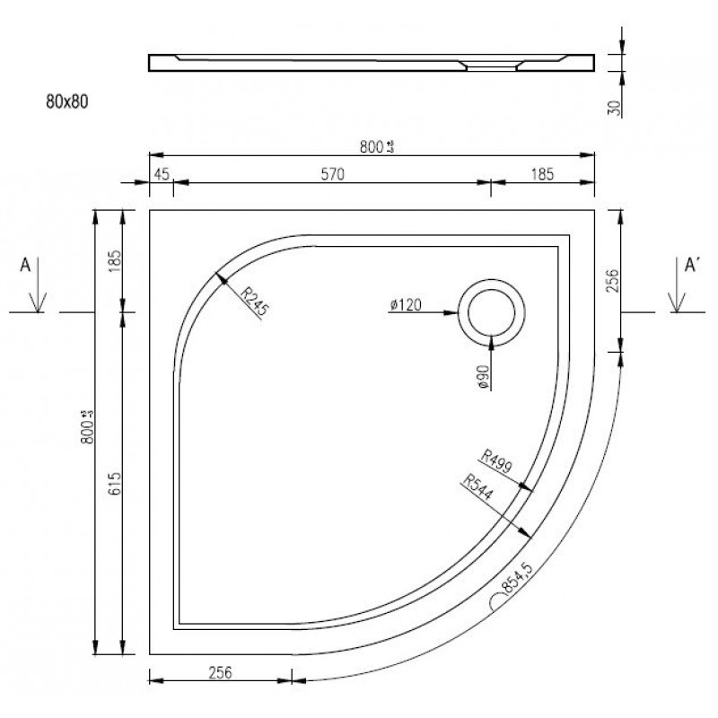 ARTTEC Stone 8080R sprchová vanička čtvrtkruhová, litý mramor PAN00787- Rozměr: 800 x 800 x 30 mm