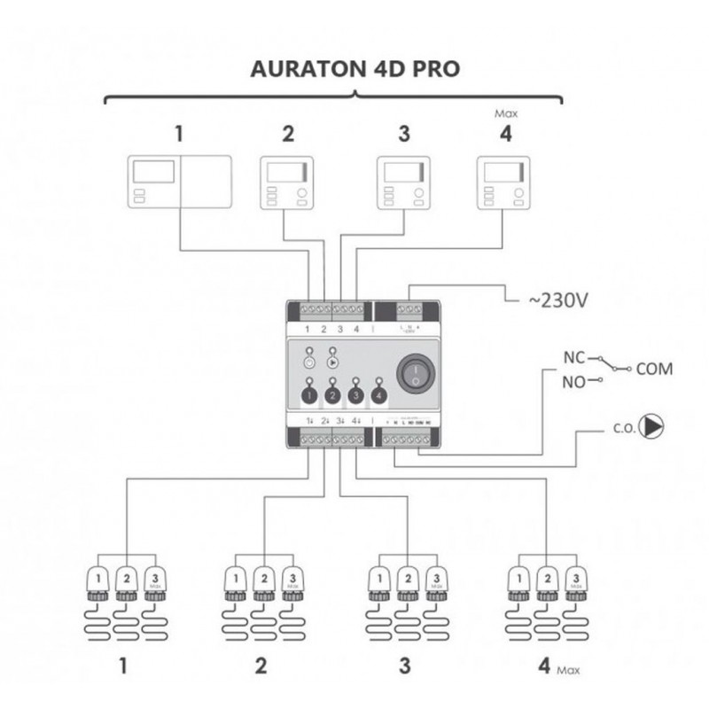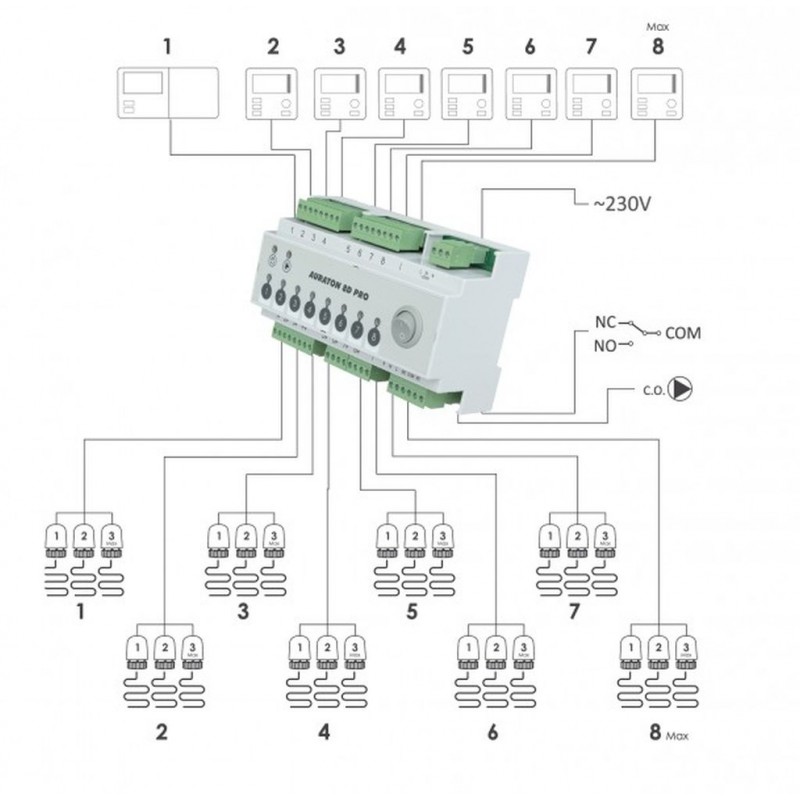 - Na každou zónu lze připojit až 4 servopohy AURATON TE 230 PRO