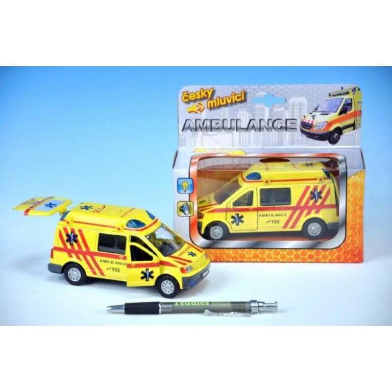 Auto ambulance, kov, 13cm, česky mluvící, na baterie, se světlem 00065710