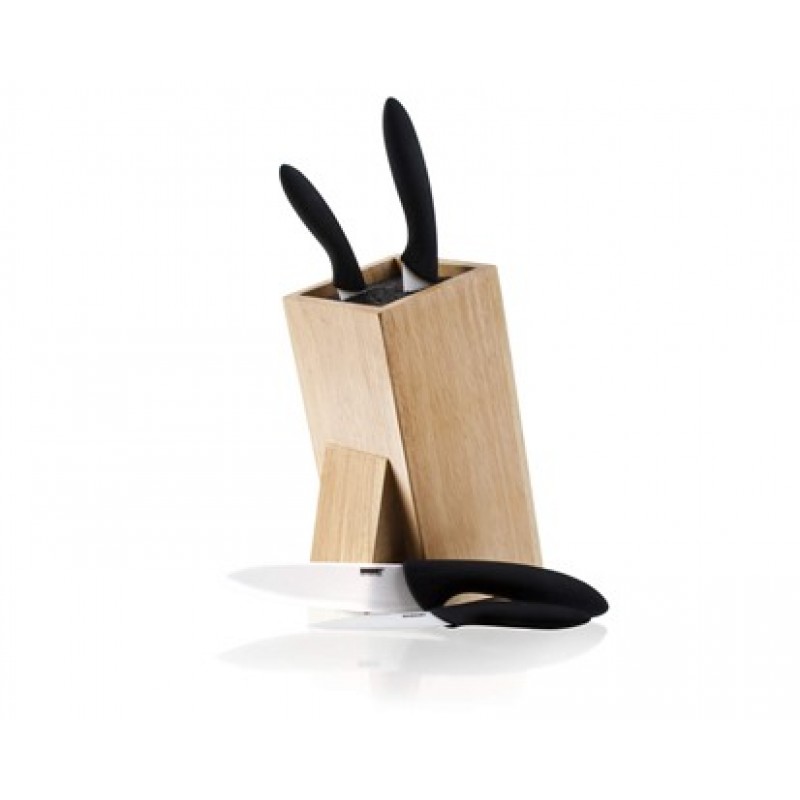 BANQUET 5ti dílná sada Mizumi 25CKLB055ti dílná sada Mizumi, sada keramických nožů se stojánkem, sada obsahuje : dřevěný stojan (gumovník) s plastovou štětinovou vložkou (16,5x11,5x24,5cm) + 4 keramické nože (16,5cm, 19cm, 23cm, 27,5cm).