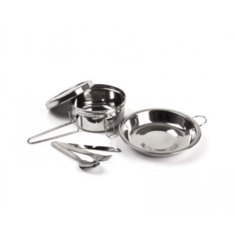 BANQUET 6d kempingová sada Store Line 15809S0116dílná kempingová sada Store Line z nerezu, sada obsahuje - 1x miska 14cm s výklopným držadlem, 1x talíř 20cm, 1x víčko, 1x lžíce, 1x vidlička, 1x nůž.
