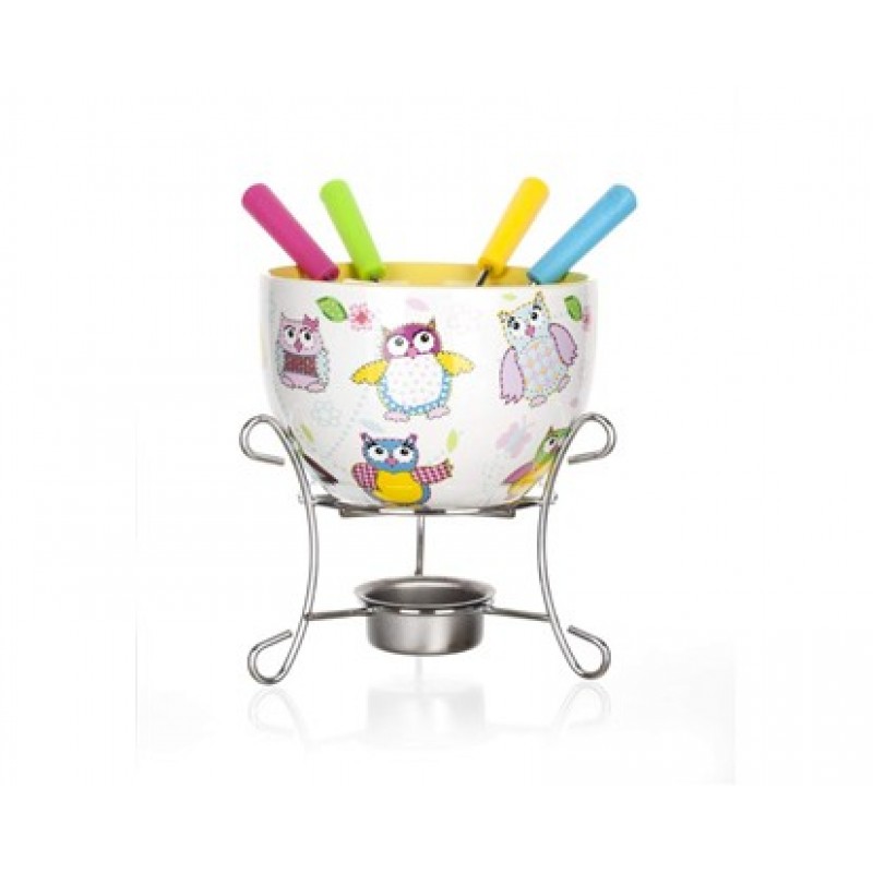 BANQUET 6ti dílné fondue na čokoládu OWL 17AA12126dílný fondue set na čokoládu OWL. 1x keramická miska průměr misky 11,5cm, výška misky 7,5cm, 1x stojánek s držákem pro čajovou svíčku, výška 8cm, 4x vidlička, délka 15cm, materiál nerez + PP ,