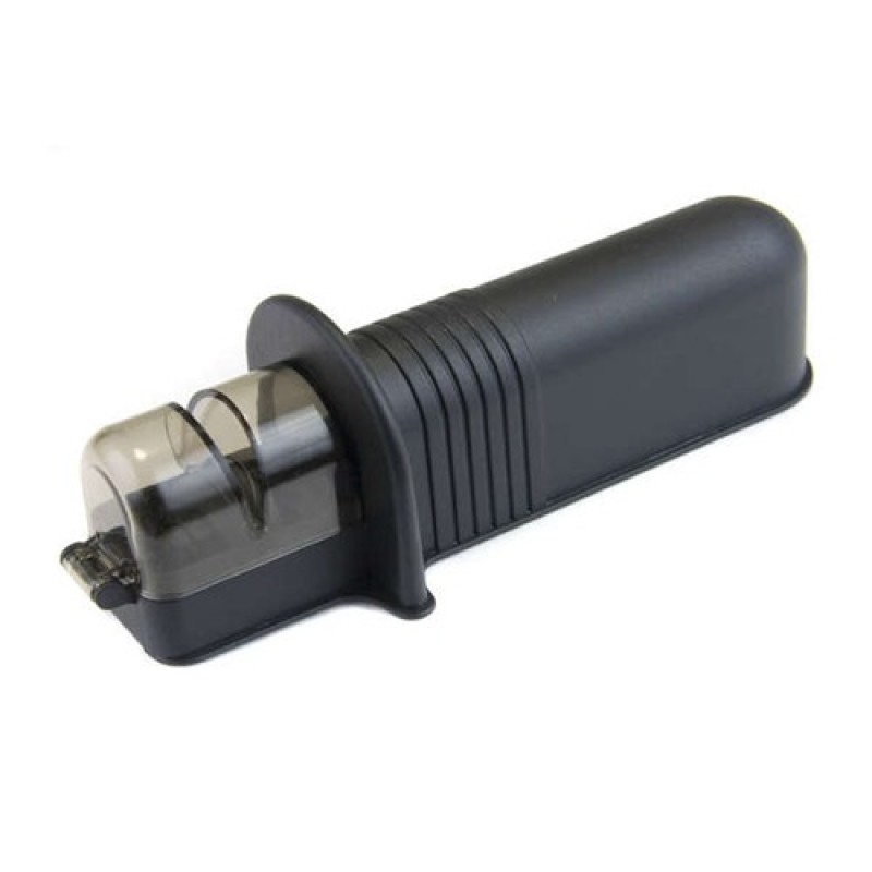 Praktický příruční brousek na ocelové nože pro snadné a rychlé broušení. Brousek stačí opřít o pevnou podložku a vodící drážka nasměruje nůž pod správný úhel broušení mezi keramické kotoučky.