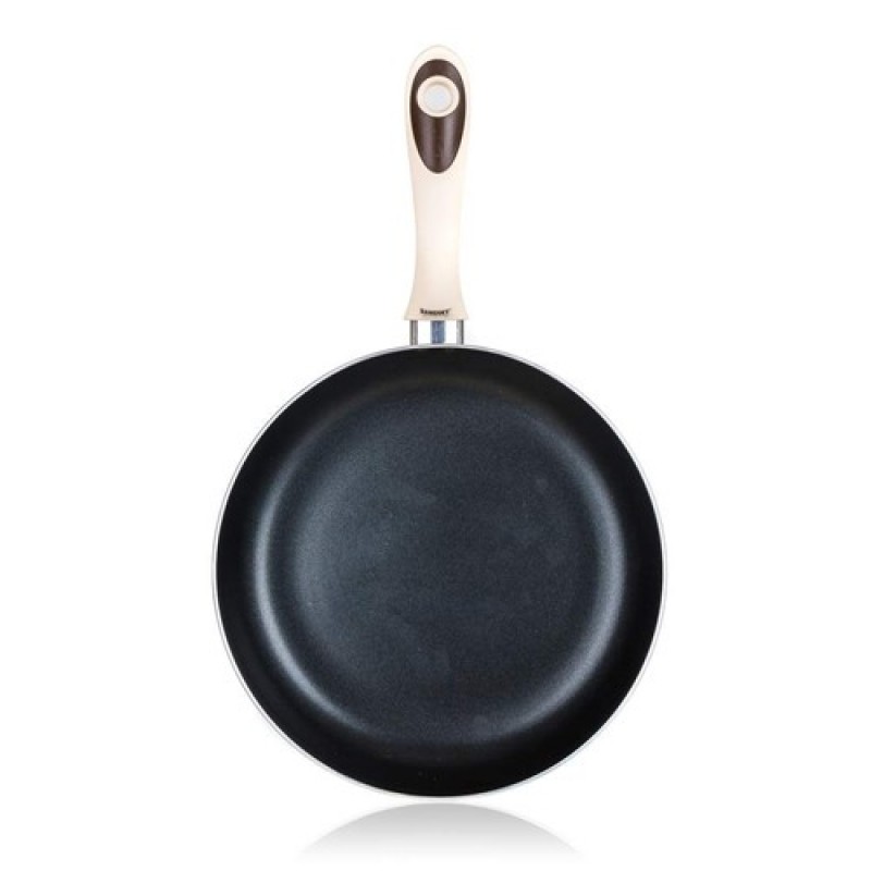 Hliníková pánev wok CONTRA 28 x 8 cm s nepřilnavým 2-vrstvým černým povrchem, bílou SOFT TOUCH rukojetí a skleněnou poklicí s bílým silikonovým knobem a silikonovým okrajem. Pánev je vhodná pro indukční vaření.Výška (cm):8