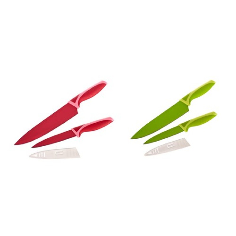 2dílná sada nožů s nepřilnavým povrchem Finestra Colore, sada obsahuje kuchařský nůž 32 cm (čepel 19,5 cm) a univerzální nůž 23 cm (čepel 12 cm) s ochranným plastovým pouzdrem.Délka (cm):32 / 23