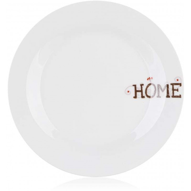 18dílná talířová sada v bílé barvě s dekorem HOME je vyrobena z porcelánu. Sada obsahuje: 6 x dezertní talíř 19 cm, 6 x hluboký talíř 21,5 cm a 6 x mělký talíř 24 cm. Talíře lze používat do mikrovlnné trouby a mýt v myčce na nádobí, ale ne na intenzivní programy, dekor je na glazuře. V nabídce máme další produkty z kolekce HOME.Parametry: