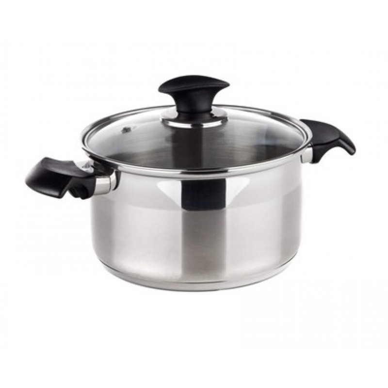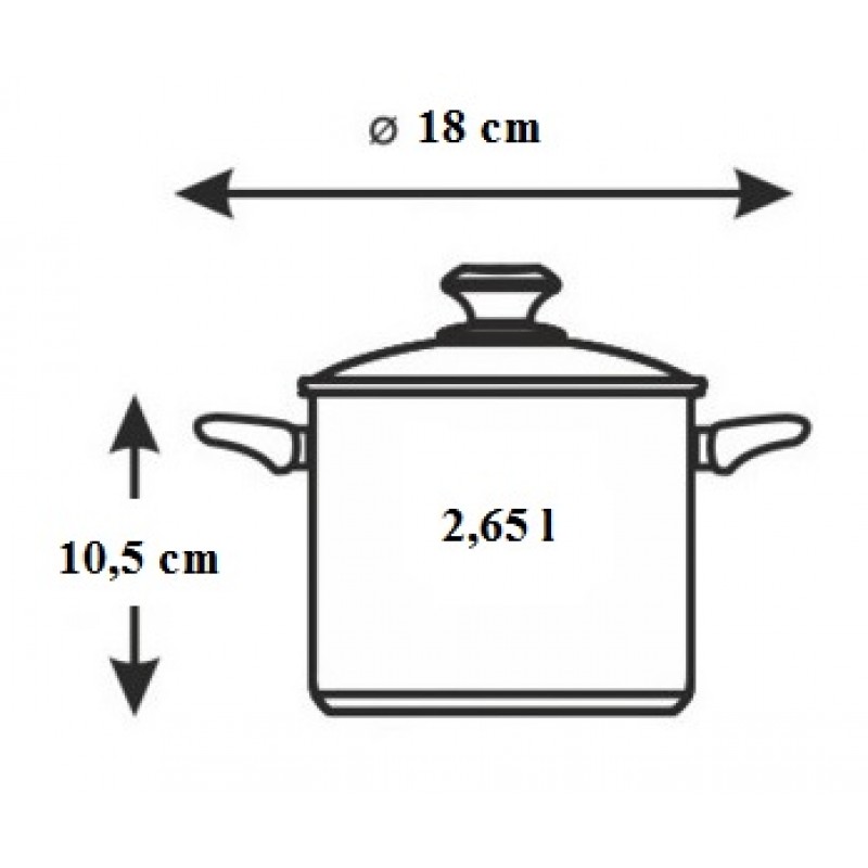 BANQUET Hrnec s poklicí 18cm, 2,65L Akcent New Line 48RW1231H18-ANerezový hrnec 2,65L se skleněnou poklicí, rovný tvar, na vnitřní straně hrnce měrka objemu, protektor 18/0 pro indukční vaření, povrchová úprava lesk a mat, rozměry hrnce 18x10,5 cm, držadla a úchyty z černého plastu.