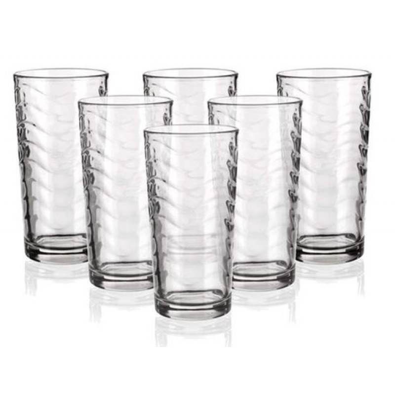 Sklenice long drink 270 ml Pure Wave A6, sada 6 ks čirých sklenic s vlnovkou po obvodu, univerzální použití, výška sklenic 13,2 cm, průměr 6,6 cm.