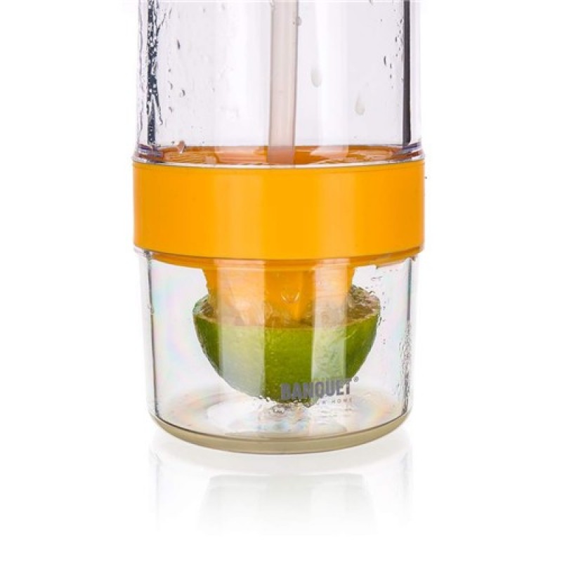 Sportovní láhev SQEEZY 650 ml, oranžová je vyrobená z vysoce odolného plastu - TRITAN. Jedná se o velmi odolný plast vhodný pro studené i horké nápoje. Láhev je opatřena vodotěsným víčkem, které je rovněž vyrobeno z plastu (PP/AS). Láhev je vybavena zabudovaným lisem na citrusy.