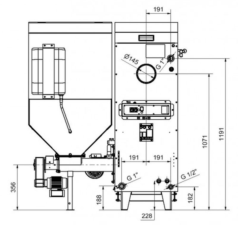 - zásobník paliva umístěný na levé straně kotle při čelním pohledu