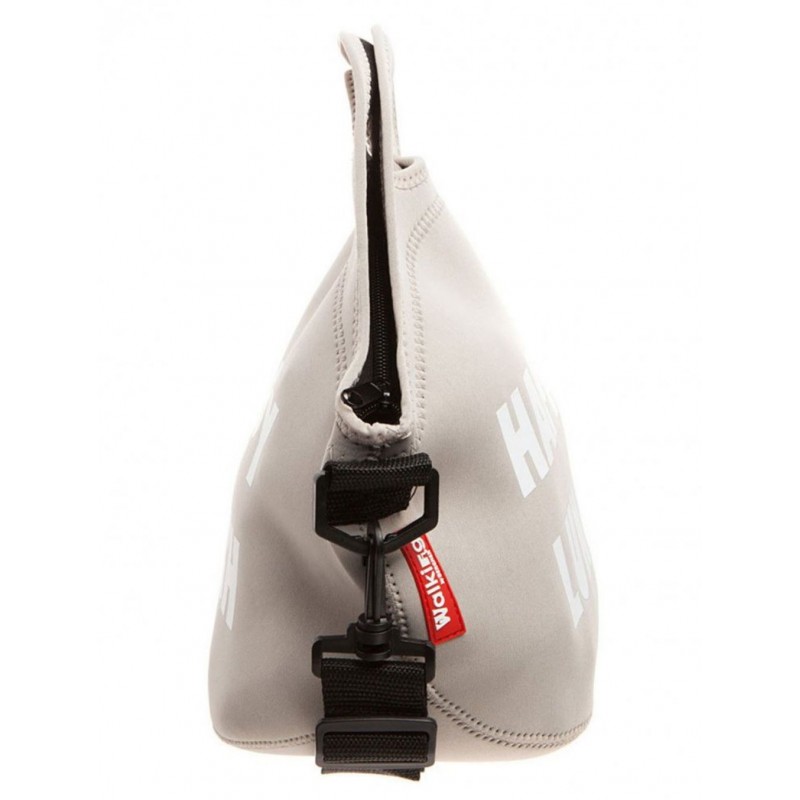 - Taška má dvě ucha, zapínání na zip, odnímatelný popruh a potisk vpředu.