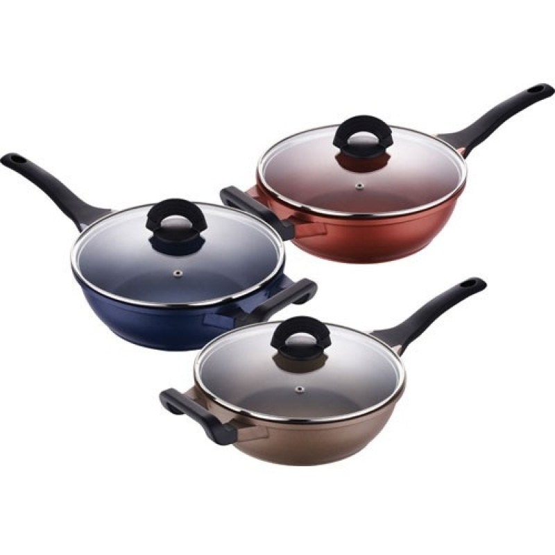 BERGNER Pánev hluboká s nepřilnavým povrchem a poklic 24 cm SPARK, modrá BG-6737modr-materiál: litý hliník