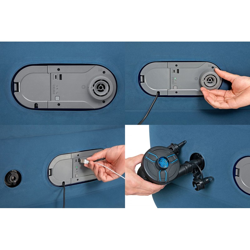 - Vestavěná zdvojená pumpa AlwayzAire™ na střídavý proud o napětí 220–240 V nafoukne lůžko za 3 minuty