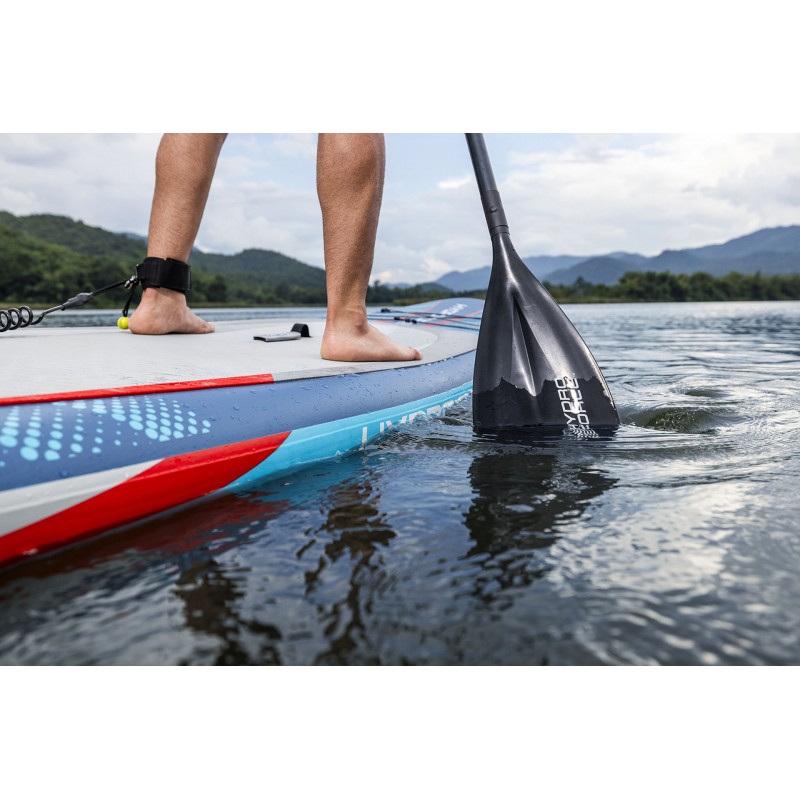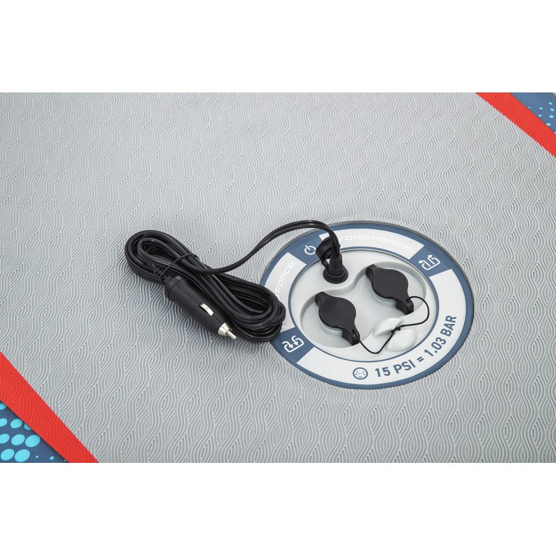 Odolná konstrukce FortiFiber™ se zapuštěnými švy (drop stitch) je tvořena tisíci vnitřních vláken, která propojují horní a spodní vrstvu paddleboardu. Výsledkem je mimořádná tuhost a pevnost srovnatelná s pevným prknem, při zachování nízké hmotnosti a snadné skladnosti. Díky samonafukovacímu systému CompactAir™ s vestavěným čerpadlem stačí připojit napájecí kabel a během chvíle jste připraveni vyrazit na vodu.
