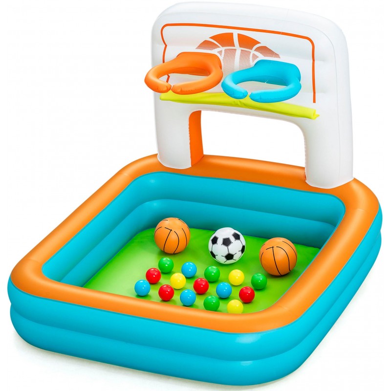 Dětský bazén Kick 'n Swish™ 3v1 nabízí nekonečnou zábavu a zároveň podporuje důležité motorické dovednosti. S dvojitými basketbalovými koši, fotbalovou brankou a zábavnou rampou pro trestné hody se děti mohou věnovat různým sportovním aktivitám.