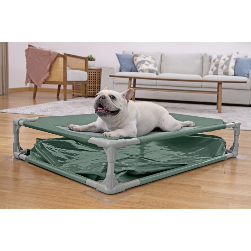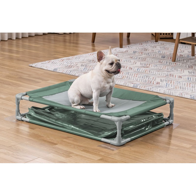 Díky oboustrannému 2v1 designu si domácí zvíře může samo vybrat, zda se bude koupat, nebo odpočívat. Strana bazénu je vyrobena z odolného třívrstvého materiálu TriTech®, chráněného proti propíchnutí a UV záření. Lůžko je vyrobeno z pevné prodyšné síťoviny (mesh tkaniny) a odolné Oxford tkaniny, které zajišťují optimální proudění vzduchu a pohodlí při odpočinku.