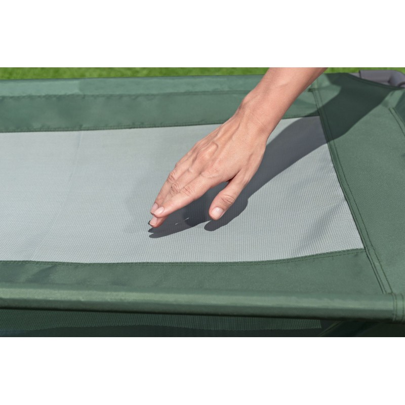 - Odolné materiály – bazén z třívrstvého materiálu TriTech®, lůžko z pevné prodyšné síťoviny a Oxford tkaniny.