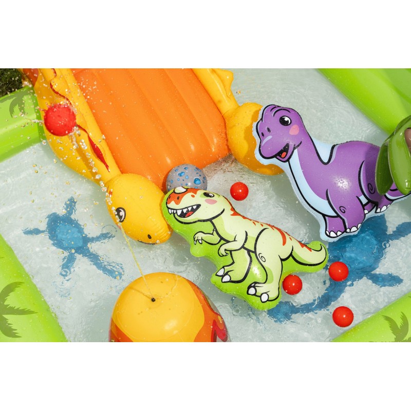 Vyrobeno z odolného PVC, hrací centrum je stabilní, dlouhotrvající a vhodné pro děti od 2 let. Pojme až 3 děti najednou a kombinuje zábavu ve vodě s kreativními herními prvky a motivem dinosaurů.