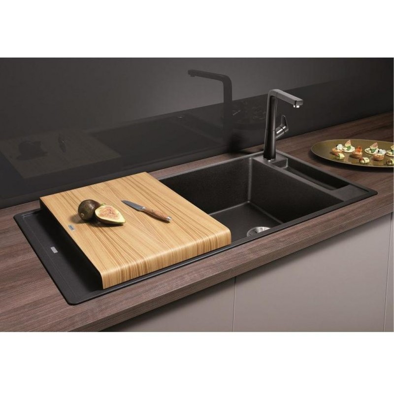 - Krájecí deska kompozitní, odtoková armatura s prostorově úspornou trubkou, 2 x 3 1/2“ košový ventil InFino