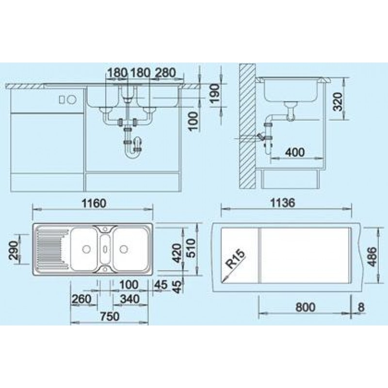 Rozměr dřezové nádoby: 340 x 420 mm / 260 x 420 mm