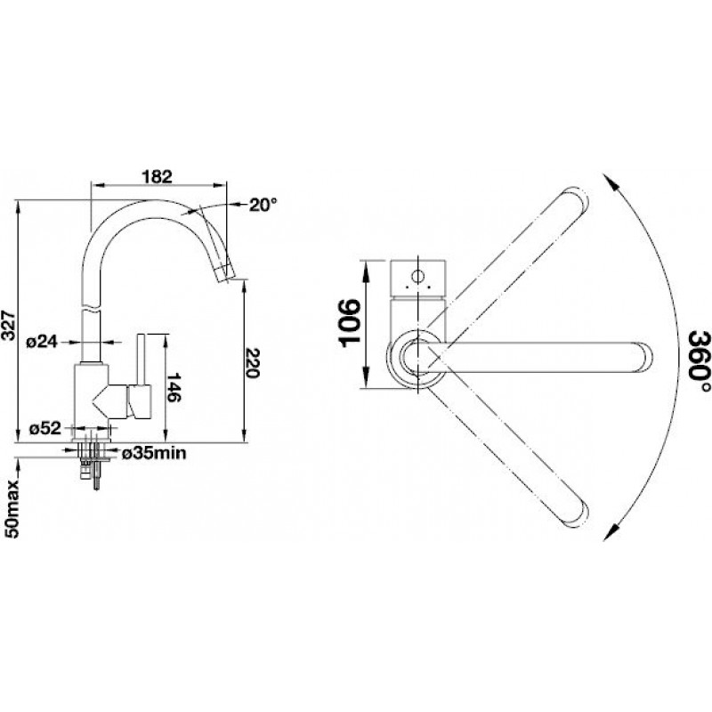rozšířený akční rádius: o 360 ° otáčitelný odtok.