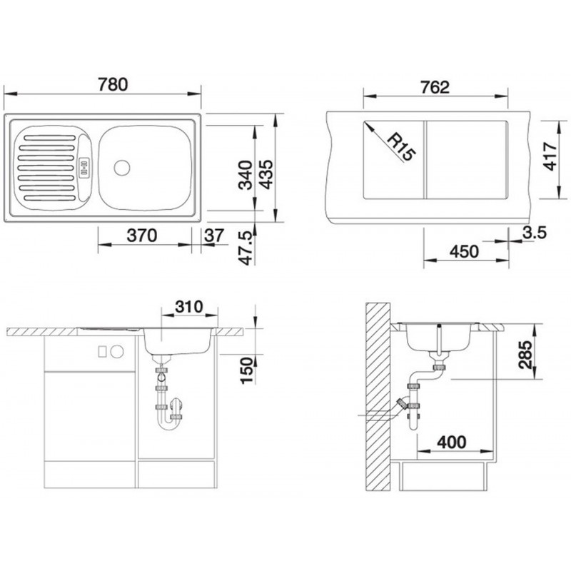 - Rozměr dřezu: 780 x 435 mm