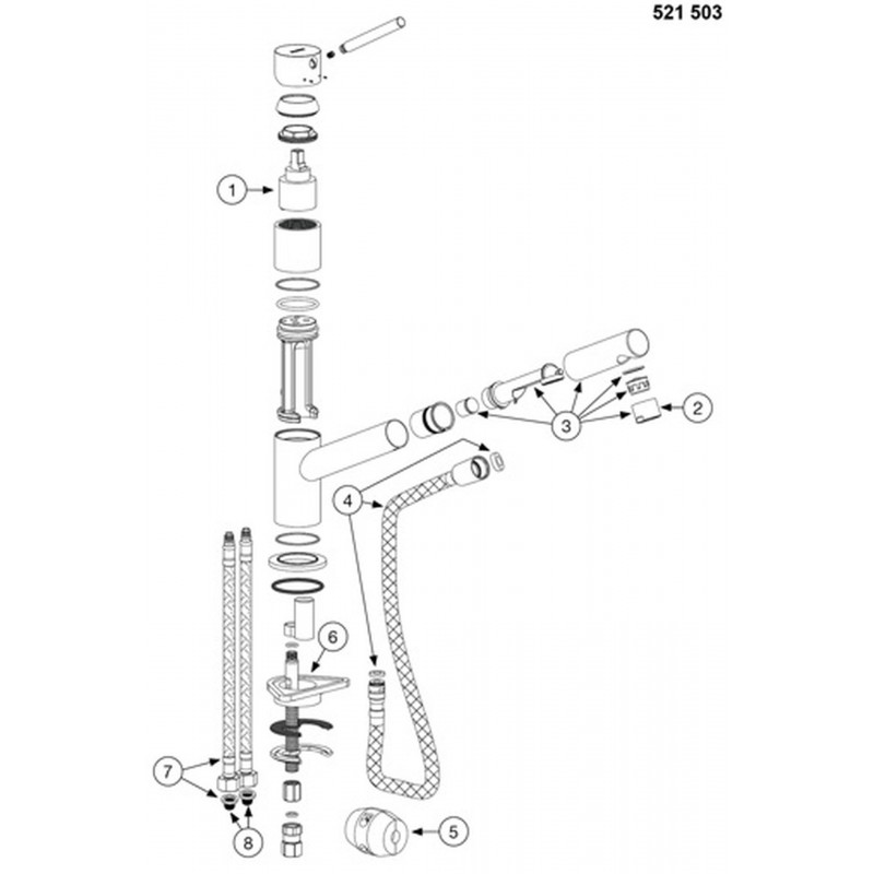 - Pružné připojovací hadice o délce 450 mm a s 3/8“ maticí pro mimořádně snadnou a bezpečnou montáž