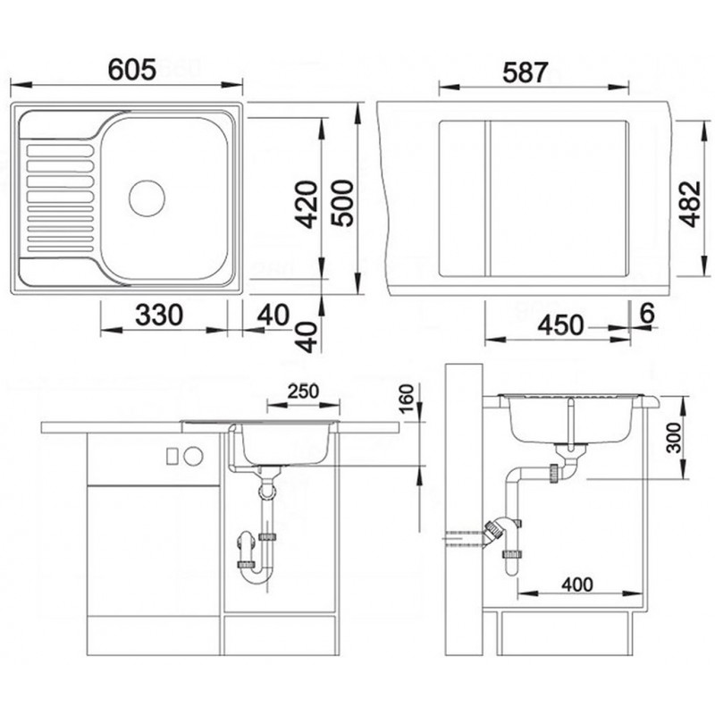 BLANCO set Tipo 45 S mini 3 1/2 nerez kartáčovaný 605 x 500 mm + DARAS baterie chromBLANCO Tipo 45 S Mini dřez nerezový včetně sifonu, nerez kartáčovaný 516053:
