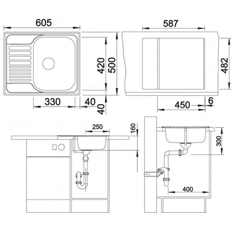 BLANCO set Tipo 45 S mini 3 1/2 nerez kartáčovaný 605 x 500 mm 516053 + DARAS-S baterie chrom 517731