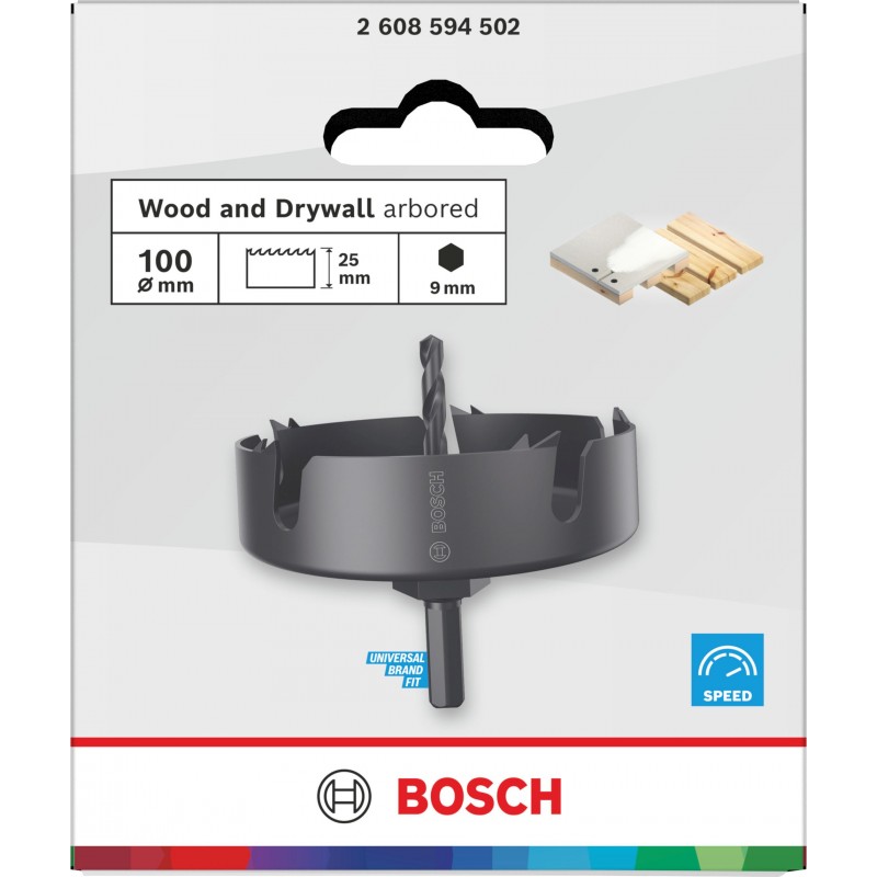 BOSCH Děrovka s adaptérem na dřevo a sádrokarton, 100 × 27 mm 2608594502