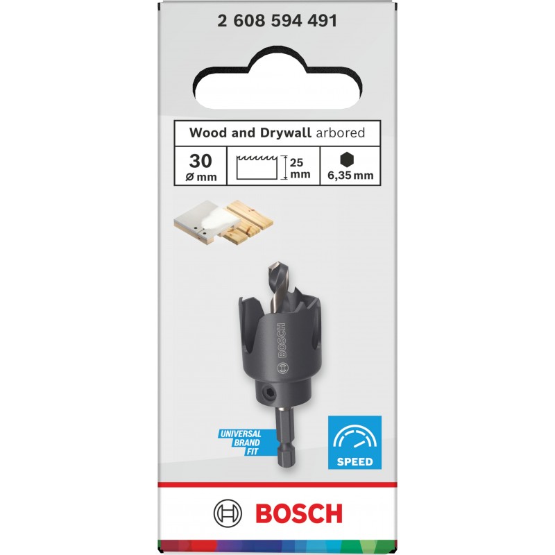 BOSCH Děrovka s adaptérem na dřevo a sádrokarton, 30 × 27 mm 2608594491