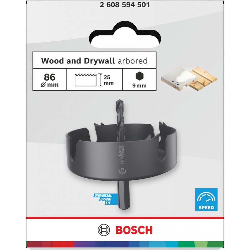 BOSCH Děrovka s adaptérem na dřevo a sádrokarton, 86 × 27 mm 2608594501