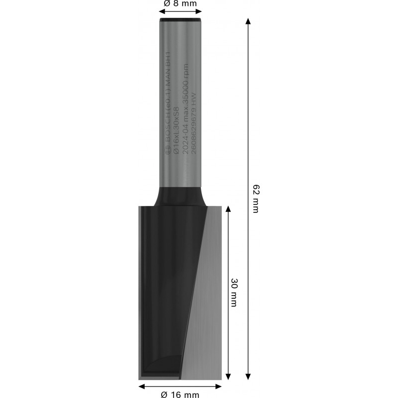 BOSCH Drážkovací fréza PRO, dva břity, ø 16 × D 30, stopka 8 mm 2608629679