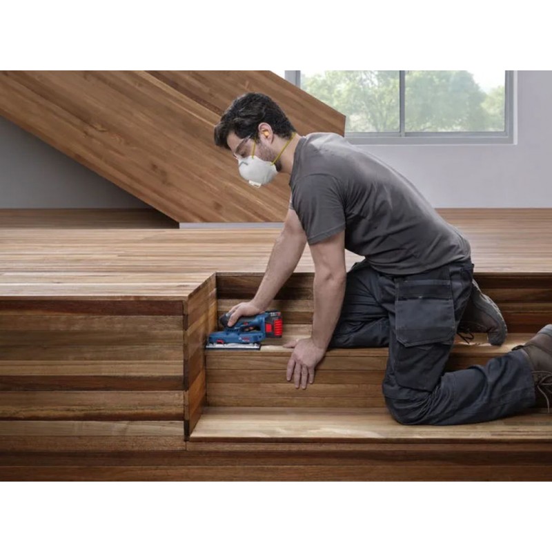 GSS 18V-18 je určena k broušení dřevěných nebo kovových povrchů a hran, suchých stěn/omítek, broušení povrchů před lakováním a odstraňování starých nátěrů. Je kompatibilní se systémem Bosch Click&Clean.