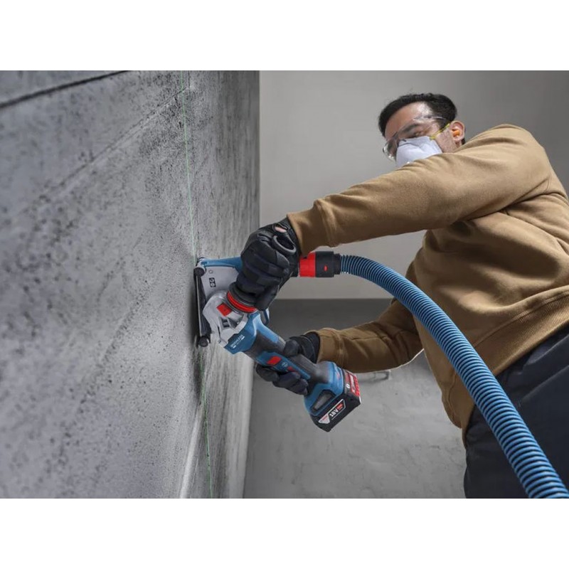 PRO GWS18V-11PS nabízí všestranné funkce ochrany uživatele, včetně funkce KickBack Control, inteligentního brzdového systému, ochrany proti opětovnému spuštění a páčkového spínače. Tato vysoce výkonná akumulátorová bruska s výkonem odpovídajícím síťovému nářadí 1 100 W. Je extrémně robustní a zaručuje dlouhou životnost. PRO GWS18V-11PS je ergonomická a snadno se používá díky dlouhé, štíhlé rukojeti a pohodlné antivibrační rukojeti, která zmírňuje únavu. Má také bezklíčový kryt a matici, díky čemuž je ovládání jednoduché a pohodlné. A navíc jako první získáš větší flexibilitu díky ergonomické otočné rukojeti, která usnadňuje řezání i broušení.