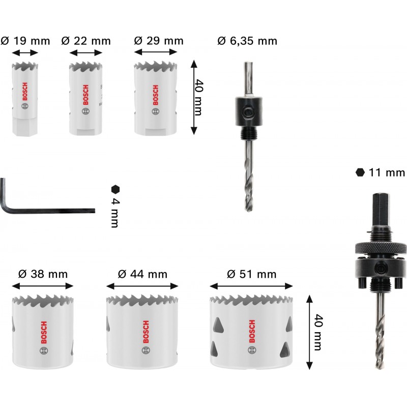 BOSCH Multi Material Sada děrovek se závitem, 19; 22; 29; 38; 44; 51 × 40 mm 2608594611