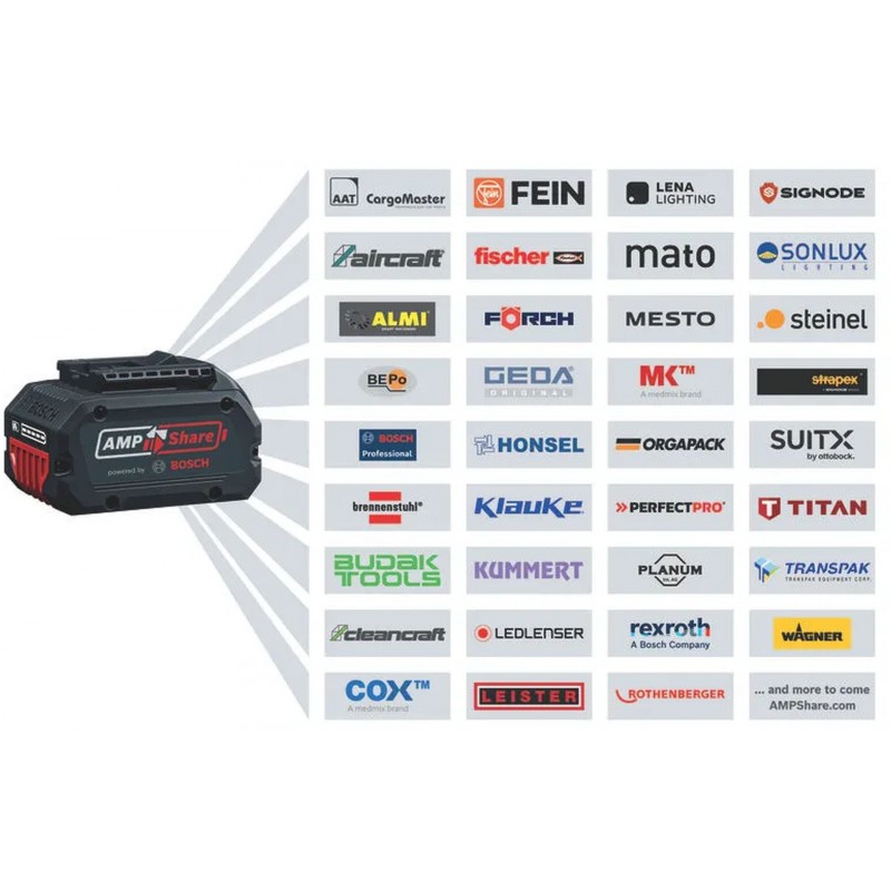 Kompatibilní s profesionálním 18V systémem Bosch a aliancí akumulátorů různých značek AMPShare.