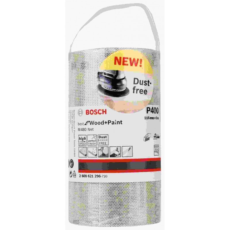 BOSCH Role brusného papíru M480 Best for Wood and Paint, 115 mm, 5 m, 400 2608621296