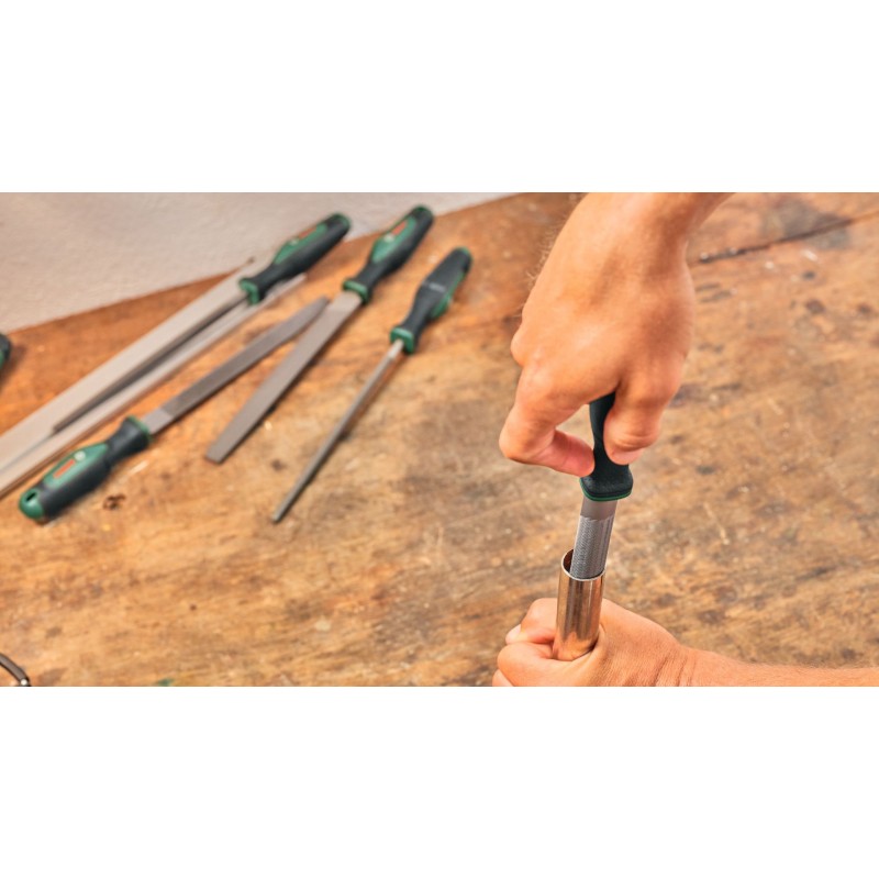 Pokud jde o kutilské obrábění kovů, je sada pilníků na kov Bosch 200 mm/8“ s kartáčem ideální volbou. Tato vysoce kvalitní sada se skládá ze 3 robustních pilníků – plochého, půlkulatého, kulatého – a kartáče na pilníky. S hrubostí 2 je sada pilníků ideální pro efektivní zpracování kovů. Nářadí je vyrobeno z vysoce kvalitní tvrdé uhlíkové oceli (63 ± 3 HRC) a nabízí robustnost a odolnost. Ergonomicky navržená rukojeť s měkkým úchopem a oblastí pro tlak palcem pomáhá snižovat únavu rukou a zlepšuje kontrolu nad nářadím. Kartáč pomáhá udržovat u pilníků čistotu a účinnost. Pro rychlé uložení a snadný přístup je nářadí vybaveno praktickými otvory pro zavěšení. Pilníky odpovídají normě ISO 234.