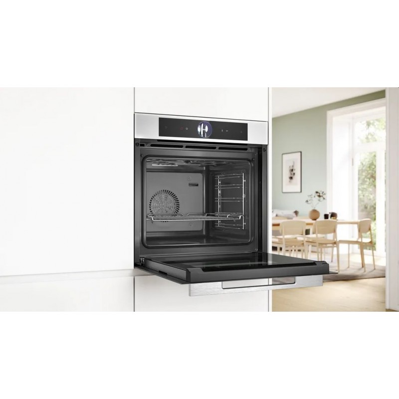 Vestavná parní trouba s digitálním ovládacím prstencem a dotykovým TFT displejem. Funkcí Assist pro dokonalé pečení, pečení s přídavnou párou a jemné vaření v páře. Home Connect pro ovládání prostřednictvím aplikace.