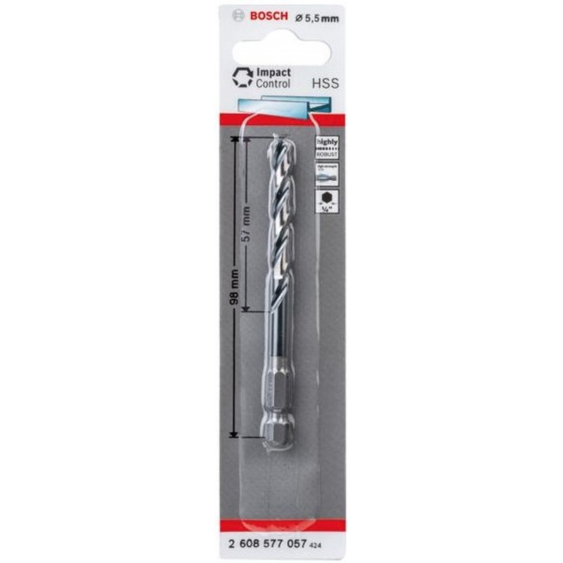 BOSCH Spirálový vrták s šestihrannou stopkou HSS 5,5 mm 5.5 x 57 x 98 mm 2608577057