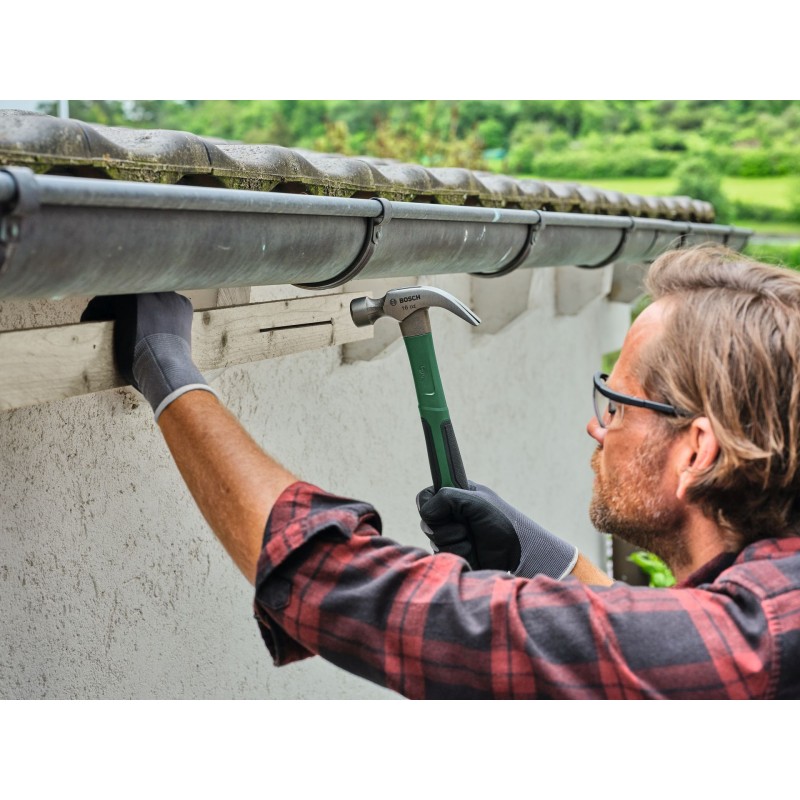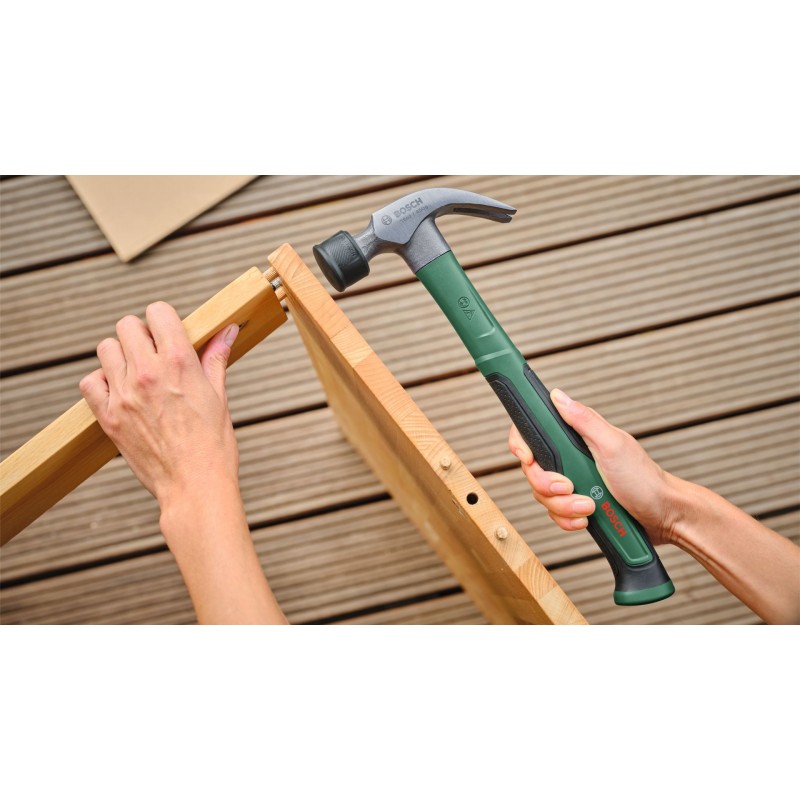 Přidejte do své dílenské sestavy tesařské kladivo Bosch s hmotností 450 g (16 oz) pro výkonné zatloukání a všestranné kutilství. Toto multifunkční nářadí je dokonalým pomocníkem na zatloukání nebo odstraňování hřebíků při oddělování dřevěných konstrukcí. Kladivo je vyrobeno z tvrdé uhlíkové oceli (50–58 HRC) a vyztuženo jádrem ze skleněných vláken, takže poskytuje špičkovou sílu a efektivitu úderu s minimálními vibracemi. Matný povlak na hlavě zvyšuje ochranu proti korozi a podporuje dlouhou životnost. Na snadné odstraňování zaseklých hřebíků má robustní čelisti zahnuté směrem dolů. Každá práce se zvládne s pohodlím a kontrolou díky ergonomické rukojeti s dynamickým designem s pogumováním a vyváženou hlavou.