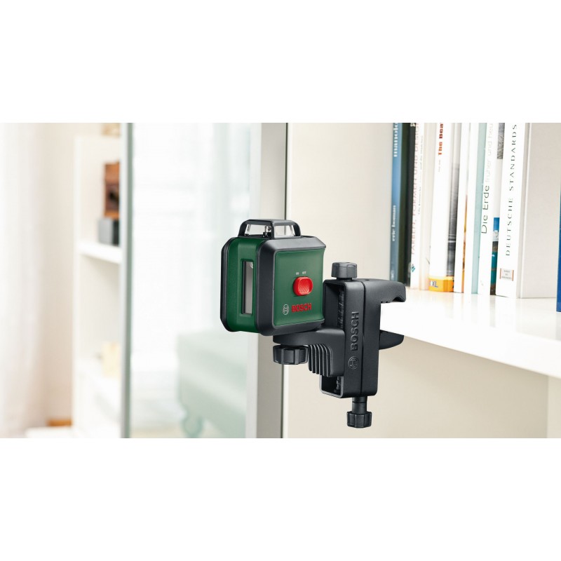 Čárový laser UniversalLevel 360 propojuje přesnost, všestrannost a komfort a poskytuje vynikající viditelnost pro vysoce přesnou nivelaci celé místnosti. Samonivelační projekce laserové čáry v úhlu 360° vodorovně a 120° svisle umožňuje komfortní a rychlé vyrovnání, technologie zeleného laseru poskytuje výrazně lepší viditelnost a zajišťuje komfortní práci i při velmi jasných světelných podmínkách. Plánujete konstrukci podhledů nebo záclonových kolejnic ve stejné výšce? Chcete vyrovnat objekty jako police a obrazy na stejnou úroveň? Plánujete kreativní obkladačskou práci? Pusťte se do toho a popusťte uzdu své kreativitě. Funkce náklonu vám také umožní práci s diagonálními liniemi.