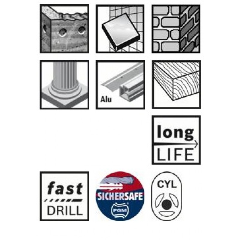 - Hodí se na prakticky všechny materiály používané při vnitřní výstavbě, jako jsou např. beton, zdivo, cihly, eternit, lehké stavební materiály, vícevrstvé materiály, keramika a dlaždice, dřevo, plast, kovové plechy, hliník