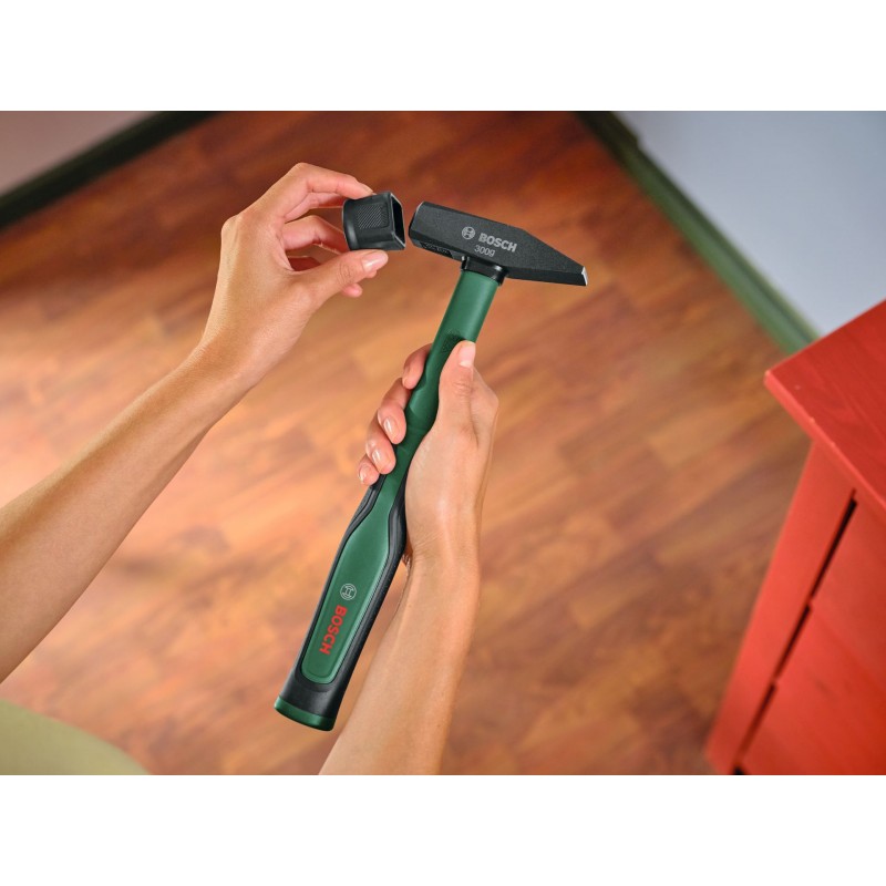 Technické kladivo Bosch s kontrolovanou silou úderu a pohodlím patří do kufru s nářadím každého kutila. Jedná se o robustní vysoce kvalitní kladivo s hlavou z uhlíkové oceli. Nářadí se vyznačuje vyváženou hmotností a jádrem ze sklolaminátu, které zajišťuje méně vibrací a vyšší účinnost úderu. Toto kladivo má vysokou trvanlivost a nabízí ergonomické pohodlí: kromě špičkových použitých materiálů se vyznačuje dvoudílnou rukojetí s velkými úchopovými plochami pro lepší manipulaci a dobrou hmatovou kontrolu.